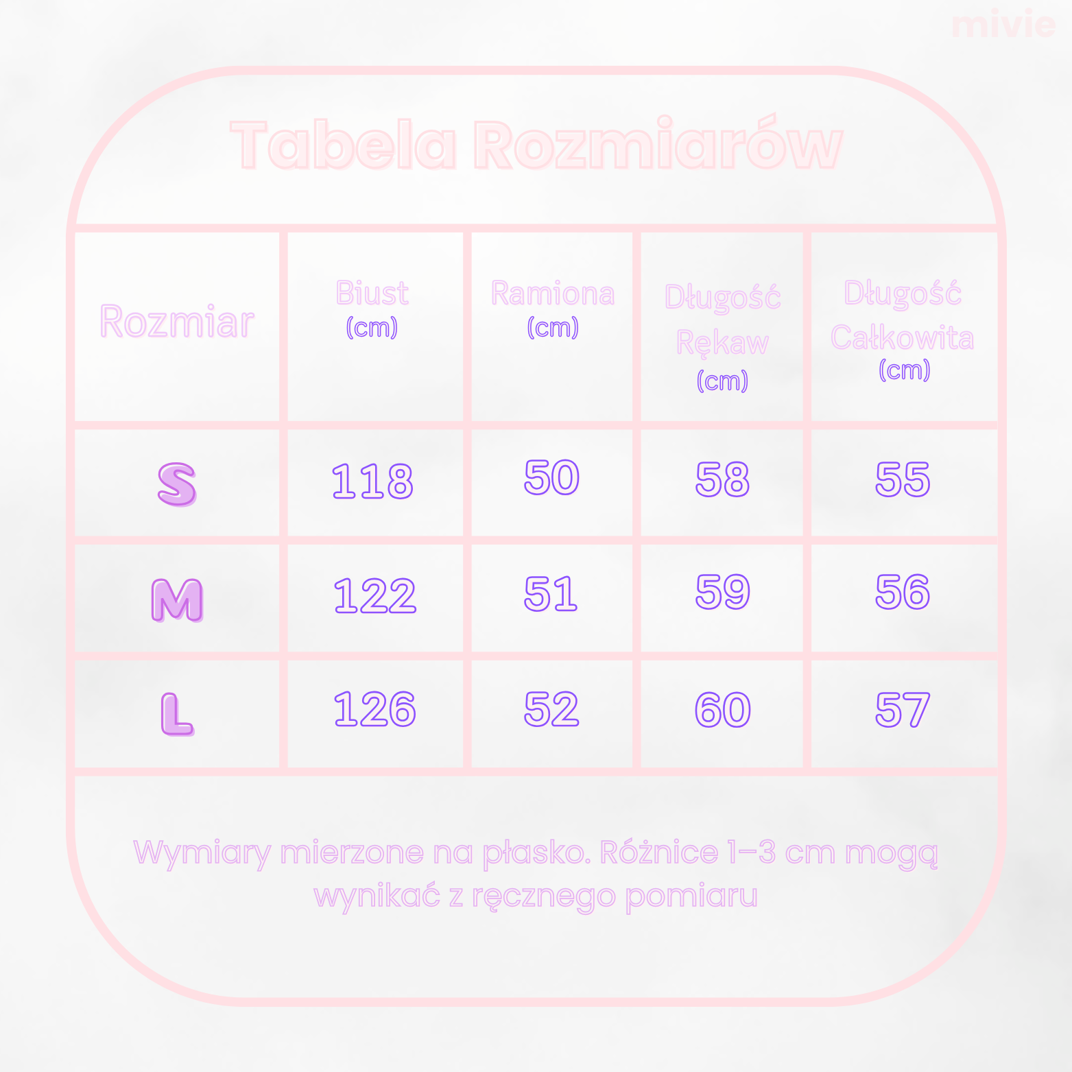 Jeśli wahasz się między dwoma rozmiarami - wybierz większy, aby uzyskać bardziej luźny, cozy efekt 💕